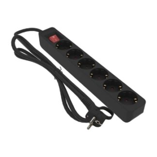 Grenuttag 6-vägs Jordad med Brytare Svart 1m