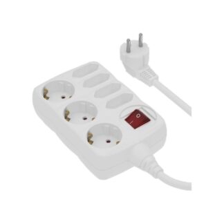 Grenuttag 6-vägs jordad med brytare vit 3m