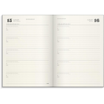Format: 142x205 mm. Layout: Dag/sida. Omslag: Linnetextil. Inbunden. Detaljer: Märkband. Innehåll: Namnsdagsregister, Årsplan. Antal sidor: 384. Pappersvikt: 100 g. Miljöinformation: FSC® papper. Varumärke: Burde.