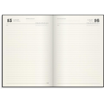 Format: 142x205 mm. Layout: Dag/sida. Omslag: Linnetextil. Inbunden. Detaljer: Märkband. Innehåll: Namnsdagsregister, Årsplan. Antal sidor: 384. Pappersvikt: 100 g. Miljöinformation: FSC®. Varumärke: Burde.
