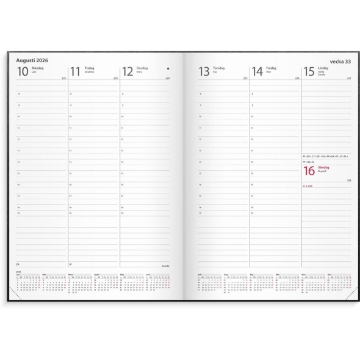 Almanacka Burde 1178 Weekly Konstläder Inbunden 2026 A5. Kalender 2026 från Burde. Format: A5. Layout: Stående. Vecka/uppslag. Timindelning 8-19. Kalendarium: 2025-12-08 - 2027-01-03. Omslag: Konstläder. Inbunden. Detaljer: Märkband. Innehåll: Helgdagar internationella, Årsöversikter, Årsplaner. Antal sidor: 144. Miljöinformation: FSC® papper.