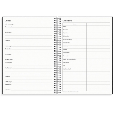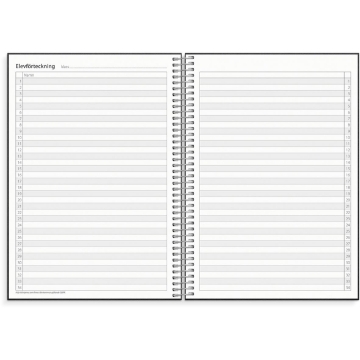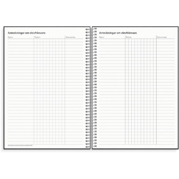Almanacka Burde 1255 Noteringskalendern för lärare 25-26 A5. Effektivisera din vardag som lärare med hjälp av en lärarkalender, som ett analogt komplement till din digitala planering. Kalendern ger dig även möjlighet att se över utmaningar och framgångar i din vardag som lärare. Här finns plats för allt ifrån scheman och klasslistor till betygstabeller. Veckouppslagen innehåller mycket plats för anteckningar då vartannat uppslag innehåller ett vertikalt veckouppslag med timindelning 8-18 och vartannat uppslag innehåller anteckningssidor. Falsat ark för elevnamn ingår.