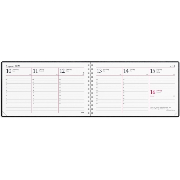 Almanacka Burde 1414 Veckokalendern Konstläder 2026 Svart. Kalender 2026 från Burde. Format: 148x90 mm. Layout: Stående. Vecka/uppslag. Timindelning 8-17. Kalendarium: 2025-12-15 - 2027-01-03. Omslag: Konstläder. Spiralbunden. Innehåll: Löst telefonregister, Årsöversikter, Årsplaner. Antal sidor: 128. Miljöinformation: FSC®.