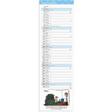 Almanacka Burde 1564 Stor Bordskalender Humor 2026. Kalender 2026 från Burde. Format: 115x370 mm. Layout: Månad/blad. Kalendarium: 2026-01-01 - 2026-12-31. Limbunden. Innehåll: Årsöversikter. Antal sidor: 13. Miljöinformation: FSC®.