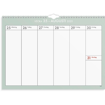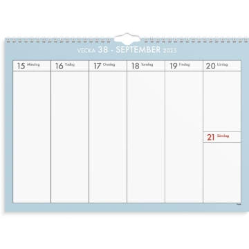 Almanacka Burde 1827 Väggkalender Veckoplan 25-26 A3. Veckoplan är en väggkalender i A3-format med vertikalt orienterat veckouppslag med mycket noteringsyta. Varje blad täcker in en vecka och kommer i olika färgteman.