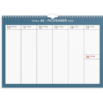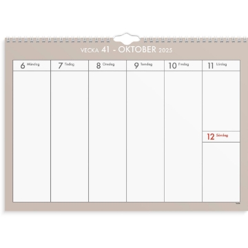 Stor väggkalender för veckoplanering.