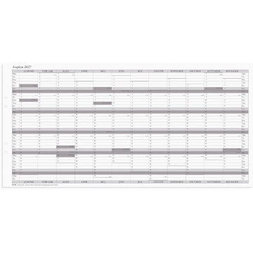 Almanacka Burde 2320 Planeringsblad Årsplan 2027. Kalenderblad som levereras som vikt till A4 i förpackning om 5 st. Väggkalender 2027 från Burde. Format: 600x297 mm. Layout: År/blad. Kalendarium: 2027-01-01 - 2027-12-31. Innehåll: Årsplan. Antal sidor: 1. Miljöinformation: FSC®.