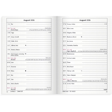 Kalender 2026 från Burde. Format: A6. Layout: Månad/uppslag. Kalendarium: 2026-01-01 - 2026-12-31. Omslag: Kartong. Häftad. Innehåll: Årsöversikter. Antal sidor: 80. Miljöinformation: FSC®.