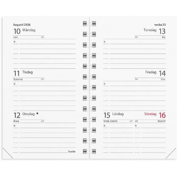 Almanacka Burde 3211 Mini Refill 2026. Kalender 2026 från Burde. Format: 63x107 mm. Layout: Liggande. Vecka/uppslag. Kalendarium: 2025-11-10 - 2027-01-03. Omslag: Kartong. Spiralbunden. Innehåll: Årsöversikt. Antal sidor: 128. Miljöinformation: FSC®.