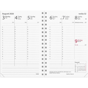 Almanacka Burde 3340 Prestige Refill 2026. Kalender 2026 från Burde. Format: 83x127 mm. Layout: Stående. Vecka/uppslag. Timindelning 7-21. Kalendarium: 2025-12-08 - 2027-01-03. Omslag: Kartong. Spiralbunden. Innehåll: Atlas, Årsöversikter, Årsplaner. Antal sidor: 152. Miljöinformation: FSC®.