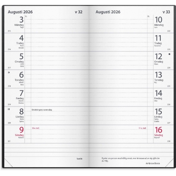 Almanacka Burde 3723 Plano Plast 2026 Svart. Kalender 2026 från Burde. Format: 85x158 mm. Layout: Liggande. Två veckor/uppslag. Kalendarium: 2025-12-22 - 2027-01-03. Omslag: Plast. Häftad. Innehåll: Anteckningshäfte, Årsöversikter, Årsplaner. Antal sidor: 64. Miljöinformation: FSC®.