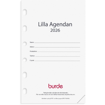 Almanacka Burde 4202 Compact Kalendersats Lilla Agendan 2026. Hålad kalenderrefill till systemkalender med ringmekanism. Kalender 2026 från Burde. Format: 79x127 mm. Layout: Stående. Dag/sida. Timindelning 8-17. Kalendarium: 2025-11-10 - 2027-01-24. Omslag: Kartong. Innehåll: Årsplaner. Antal sidor: 384. Miljöinformation: FSC®.