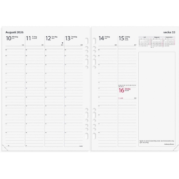 Almanacka Burde 4801 Business Kalendersats 2026. Hålad kalenderrefill till systemkalender med ringmekanism.