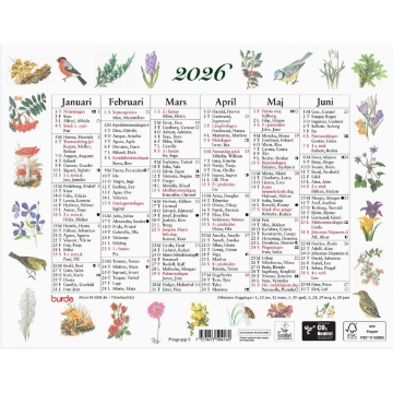 Almanacka Burde 5045 Lilla Naturalmanackan 2026. Väggkalender 2026 från Burde. Format: 245x190 mm. Layout: Halvår/sida. Kalendarium: 2026-01-01 - 2026-12-31. Innehåll: Namnsdagar. Antal sidor: 2. Miljöinformation: FSC®. Klimatkompenserad. Ecolabel.