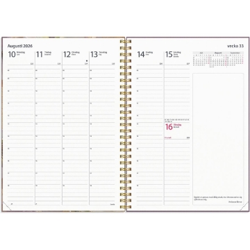 Almanacka Burde 5458 Bus91ess Story 2026 Pensé. Kalendern har ett naturinspirerat motiv med detaljer i guldfolie som gör det lilla extra. Att ha flyt på jobbet handlar till stor del om konsten att planera Det här är kalendern för dig som vet att arbetsdagen lätt blir hektisk och snabbt fylls på med möten och uppgifter, och vill ha bra översikt över din veckoplanering. När du vet vad som väntar varje dag blir du mer effektiv och chansen är större att du når dina mål. Kalender 2026 från Burde. Format: A5. Layout: Stående. Vecka/uppslag. Timindelning 8-18. Kalendarium: 2025-11-24 - 2027-01-03. Omslag: Kartong med struktur. Spiralbunden. Detaljer: Gummiband. Pappersficka. Innehåll: Helgdagar internationella, Årsöversikter, Årsplaner. Antal sidor: 128. Miljöinformation: FSC®.