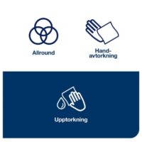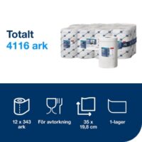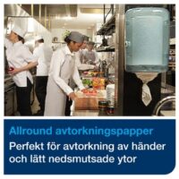 Vitt, livsmedelsgodkänt 1-lags torkpapper med slutindikator för att lätt se när pappret är på väg att ta slut.