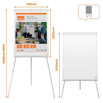 Detta moderna whiteboard blädderblockställ med magnetisk yta och elegant plastkant är det perfekta tillskottet till kontoret eller klassrummet. Den målade stålytan ger förbättrad avtorkningsförmåga, är mindre benägen att lämna skuggmärken, motstår fläckar samt är tålig mot repor och bucklor – perfekt för måttlig användning. Den släta ytan ger en bättre skrivupplevelse med tydlig, skarp och iögonfallande kommunikation som underlättar samarbetet. Whiteboarden har justerbara stativben och en magnetisk yta som gör det enkelt att fästa anteckningar, foton och viktig information. En integrerad pennbricka håller whiteboardpennor och magneter organiserade. Utrustad med krokar för blädderblock, kompatibla med Nobo-blädderblock, samt avrivningskant för smidig sidborttagning. Våra Premium Plus-whiteboardstativ är stolt märkta med EU Ecolabel – en erkänd miljömärkning som garanterar minskad miljöpåverkan under hela produktens livscykel. Whiteboardstorlek: 700 x 1000 mm.