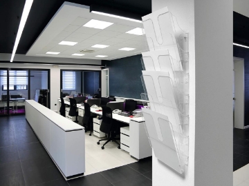 • Blankettfack med 6 fack för blanketter i stående A4-format för väggmontering (skruv och plugg ingår)