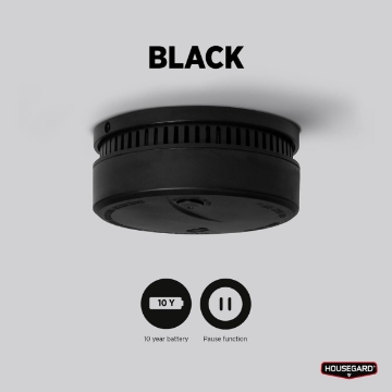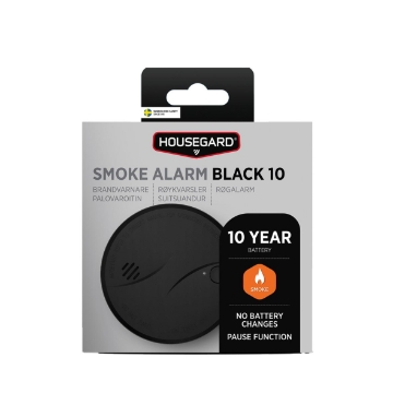 Brandvarnare Housegard Black 10 är en elegant brandvarnare med matt svart finish som förenar design och trygghet. Den är utrustad med ett inbyggt litiumbatteri med 10 års livslängd, vilket innebär att du slipper tänka på batteribyten. Perfekt för dig som vill ha en diskret och stilfull lösning som smälter in i en modern inredning. Egenskaper: • Matt svart design – passar utmärkt i stilrena och moderna miljöer • Inbyggt 10-årsbatteri – ingen batteribytesstress • Praktisk test- och pausfunktion • Låg batterivarning för extra trygghet • CE-märkt och certifierad enligt EN 14604 • Modell: SA710