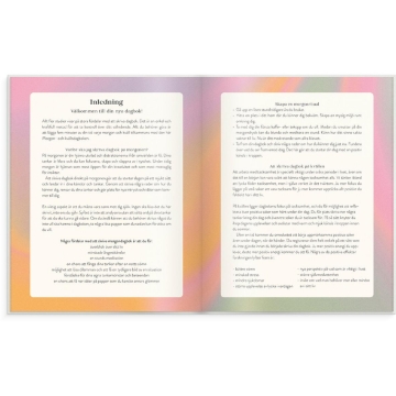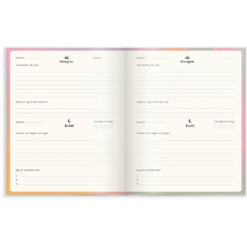 Dagbok Burde Morgon- och kvällsdagbok 170x210mm. Allt fler studier visar på stora fördelar med att skriva dagbok. Det är en enkel och kraftfull metod för att ta kontroll över ditt välmående. Allt du behöver göra är att lägga fem minuter av din tid varje morgon och kväll tillsammans med den här Morgon- och kvällsdagboken. Att skriva dagbok direkt på morgonen gör att du startar dagen på ett mjukt sätt och landar in i dina känslor och tankar. Genom att skriva några rader om hur du känner dig, rensar du dina tankar och gör plats för nya intryck och idéer som kommer till dig. På kvällen ligger dagbokens fokus på tacksamhet, och du får möjlighet att reflektera över positiva saker som hänt under din dag. Du avslutar dagen med en härlig känsla i kroppen innan du somnar. Designsamarbete med bokformgivaren och författaren Sanna Sporrong, som ingår i kollektionen Wild dreams collection, en serie stationery-produkter inom personlig utveckling.