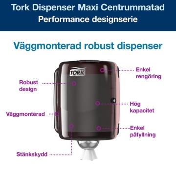 Otillräcklig rengöringsutrustning kan orsaka problem eller försena städningen. Med sin slitstarka och robusta design är Tork Maxi Centrummatad Dispenser perfekt i tuffa miljöer. Utmatning med en hand gör att det går snabbt att riva av ark och effektivisera städningen. En stänksäker kåpa håller rengöringsdukar och avtorkningspapper rena och bidrar till en förbättrad hygien. Dispenserns höga kapacitet, enkla rengöring och smidiga påfyllning, ger personalen tid att utföra andra arbetsuppgifter och ökar produktiviteten."