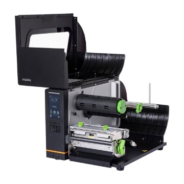 6-tums industriell etikettskrivare för termisk överföring med pekskärm i färg och utskriftshastigheter på upp till 10 ips.