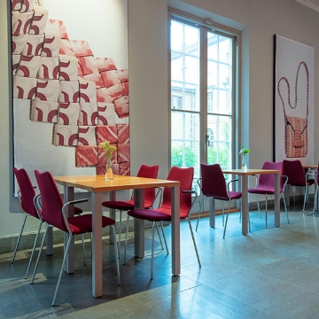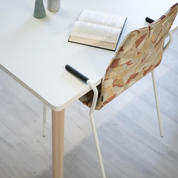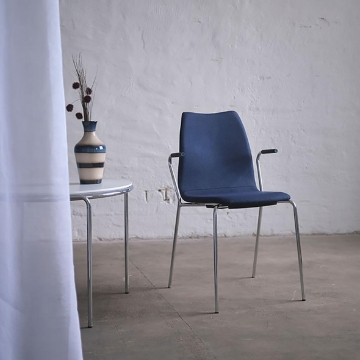 Karmstol inoff Knuff Helklädd Ljusgrå/Svart kombinerar stilren form med smart funktion. Det helklädda sittskalet i formpressat trä ger en behaglig sittupplevelse, medan de integrerade armstöden ger extra stöd och komfort. Armstödens konstruktion gör dessutom att stolen enkelt kan hängas upp på bordsskivan – en praktisk lösning för smidig städning. En stapelbar karmstol som passar lika bra i konferensrummet som i matsalen.