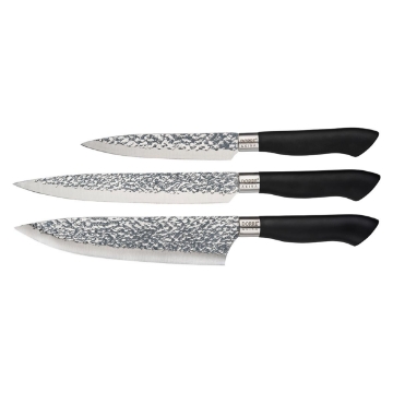Akira knivset består av 3 professionella knivar som gör dig till en vass kock i köket. Det fina svarta handtaget ligger stadigt i handen medan det hamrade bladet i stål bidrar till den exklusiva känslan, en perfekt gåva att ge bort!