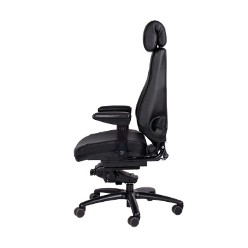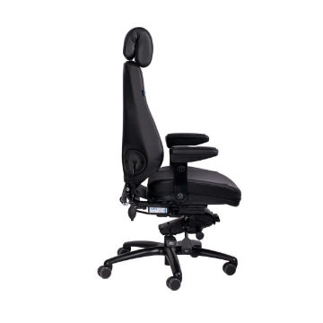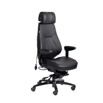 Kontorsstol Be-Ge Frapett 852 24H Konstläder Svart. Extra kraftig 24H-modell med bred sits och hög rygg som ger komfort även under de längsta arbetspassen. Separat ryggvinkel och stötdämpad rygglutning gör att stolen följer dina rörelser för en aktiv och ergonomisk sittupplevelse.
