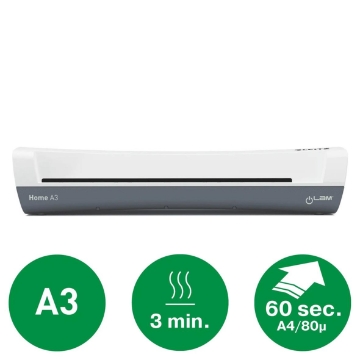 Lamineringsmaskin Leitz iLam Home A3 Vit. Skydda och förädla dina dokument med Leitz iLAM Home A3 – en lätt och kompakt lamineringsmaskin som kombinerar stil med funktionalitet. Perfekt för hemmabruk eller mindre kontor, med snabb uppvärmning och enkel hantering. • Laminerar format: Från ID-kort upp till A3 • Stanskapacitet: Upp till 2x125 mikron lamineringsfickor • Uppvärmningstid: Endast 3 minuter • Lamineringshastighet: 300 mm/min (ca 60 sekunder för ett A4-ark, 2x75 mikron) • Max lamineringsbredd: 330 mm • Max lamineringstjocklek: 0,4 mm • Värmesystem: 2 yttre uppvärmda rullar • Arbetssätt: Temperaturkontrollerad, ingen bärare krävs • Manuell frigöringsspak: För att enkelt ta bort felmatade fickor • LED-indikator: Röd (ström på), blå (klar att använda) • Design: Vit och grå, stilren och kompakt • Mått (mm): 441 x 110 x 90 • Vikt: 1,56 kg • Garanti: 2 år • Startpaket ingår: 5 st A4 UDT-lamineringsfickor (2x80 mikron)