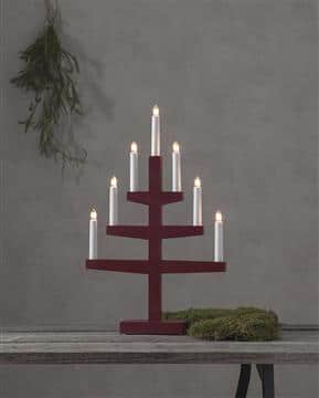 7-armad träljusstake för inomhusbruk. Passar utmärkt i fönstret och på bordet för att skapa en härlig julstämning i hemmet. 1,8 m sladd. Röd.