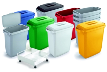 Rektangulär 60-liters tunna med ergonomiska bärhandtag. Sopsäcken sitter på plats via skåror i hörnen. Greppvänlig undersida gör det lätt att tömma tunnan. Vit och grå tunna är livsmedelsgodkänd. Den svarta är delvis tillverkad av återvunnet material. Kompletteras med vanligt lock eller lock med gångjärn samt dubbelvagn av vitlackerad plåt. Mått på tunnan: HxBxD 60x59x28cm