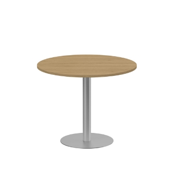 Pelarbord med bordsskiva i ek och stativ i silver. Höjd 720 mm och diameter 900 mm. Bordet passar utmärkt i cafémiljöer och finns i flera utföranden.