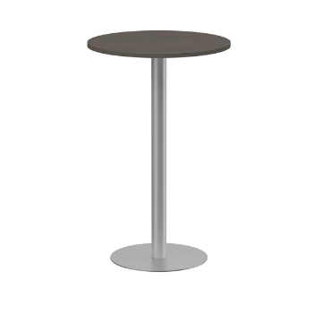 Pelarbord med bordsskiva i mörk ask och stativ i silver. Höjd 1100 mm och diameter 700 mm. Bordet passar både som barbord och ståbord. Finns i flera utföranden.