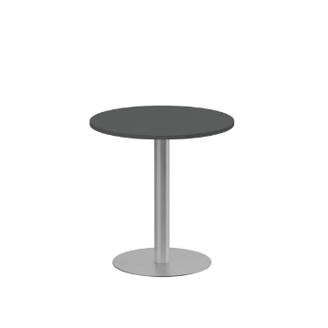 Pelarbord med bordsskiva i mörkgrå och stativ i silver. Höjd 720 mm och diameter 700 mm. Bordet passar utmärkt i cafémiljöer och finns i flera utföranden.