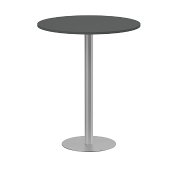 Pelarbord med bordsskiva i mörkgrå och stativ i silver. Höjd 1100 mm och diameter 900 mm. Bordet passar både som barbord och ståbord. Finns i flera utföranden.