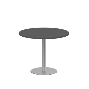 Pelarbord med bordsskiva i mörkgrå och stativ i silver. Höjd 720 mm och diameter 900 mm. Bordet passar utmärkt i cafémiljöer och finns i flera utföranden.
