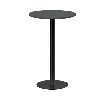 Pelarbord med bordsskiva i mörkgrå och stativ i svart. Höjd 1100 mm och diameter 700 mm. Bordet passar både som barbord och ståbord. Finns i flera utföranden.