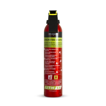 Housegard Lith-EX är en unik släckspray som är speciellt framtagen för att bekämpa litiumjonbatteribränder av begränsad storlek. Släcksprayen innehåller släckmedlet AVD. Lämplig för hem, hotellrum och fordon.