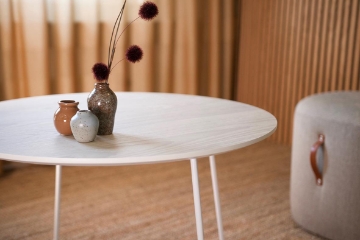 Använd borden var för sig, eller kombinera dem som satsbord för att skapa en dynamisk och flexibel möblering. Serien utmärker sig genom sin nätta form, stilrena uttryck och tåliga konstruktion – perfekt för offentliga miljöer där både funktion och form är viktiga. Produkten är certifierad och godkänd av Möbelfakta. Mått: Diameter: 70 cm, Höjd: 51 cm