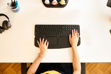 Tangentbord Contour Balance Full-Size Trådlös. Balance Full-Size erbjuder en ergonomisk design som kombineras med precision för långa arbetsdagar. Den låga profilen och den justerbara negativa lutningen hjälper händer, handleder och axlar att hamna i en neutral position, vilket minskar räckvidden och reducerar belastningen. För en optimal centrerad arbetsställning kan du kombinera med Contour Touch, eller använda tillsammans med höjdkompatibla RollerMouse Red eller RollerMouse Pro3.