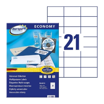 Passar för laser-, bläckstråleskrivare och kopieringsmaskiner. 70x42,2 mm. Stark och permanent etikett • Snygga, skarpa utskrifter utan kladd • Säker utskrift med skyddskanter som förhindrar limrester • Designa enkelt med europe100.eu Länk finns på förpackningen.