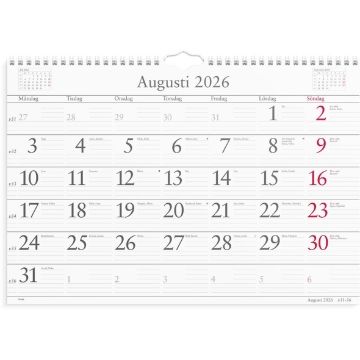 Väggkalender Burde 1700 Månadskalendern 2026. Väggkalender 2026 från Burde. Format: 430x300 mm. Layout: Månad/blad. Kalendarium: 2026-01-01 - 2026-12-31. Spiralbunden. Antal sidor: 12. Miljöinformation: FSC®.