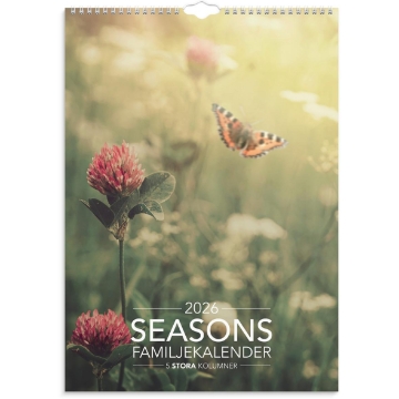 Familjekalender 2026 från Burde. Format: A3. Layout: Månad/blad. Kalendarium: 2026-01-01 - 2026-12-31. Spiralbunden. Innehåll: 5 kolumner. Antal sidor: 12. Miljöinformation: FSC®.