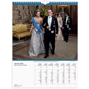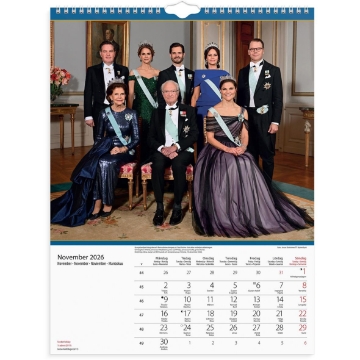 Väggkalender Burde 1797 Kungafamiljen 2026. Bilder på svenska kungafamiljen, den är femspråkig (svenska, engelska, tyska, spanska och finska) och har svenska namnsdagar.