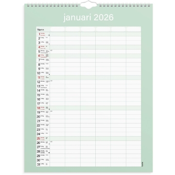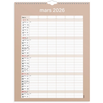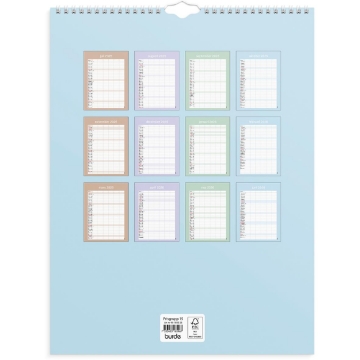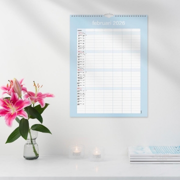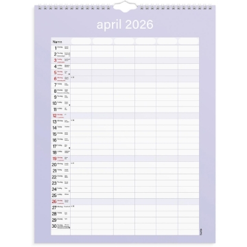Väggkalender Burde 1859 Familjekalender Praktisk 25-26. En neutral praktisk familjekalender att hänga på väggen. Kalendern har sex kolumner som passar den stora familjen eller för er som vill ha en möjlighet att planera det där lilla extra för att få ihop ert livspussel. Använd exempelvis de extra kolumnerna till att planera in måltider eller födelsedagar. Familjekalender 25/26 från Burde. Format: 295×390 mm. Layout: Månad/blad. Kalendarium: 2025-07-01 – 2026-06-30. Spiralbunden. Innehåll: 6 kolumner. Antal sidor: 12. Miljöinformation: FSC®. Organisera familjens alla aktiviteter. Håll koll på viktiga datum. Gör hela familjen delaktig i planeringen.