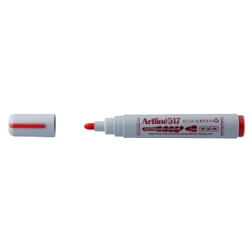 Whiteboardpenna Artline 517 ECO-GREEN Konisk Röd. Whiteboard-penna med koniska spets 3 mm skrivbredd. Plasthylsa i återvunnen plast, alkoholbaserat pigmenttusch utan Xylen, Dry Safe-funktion vilket betyder att den vara utan huv i 48 timmar.Tillverkad av återvunnen plast. Miljömärk med Eco Mark (24112014)